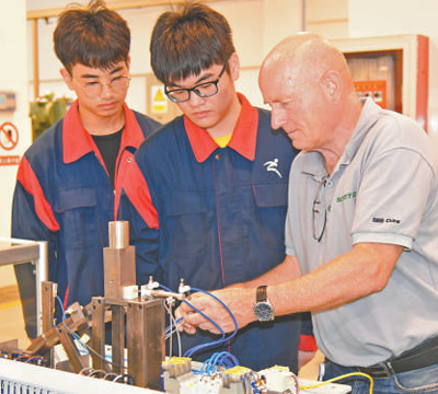 德国技术人员为苏州健雄职业技术学院学生培训操作技能。 樊春吉摄